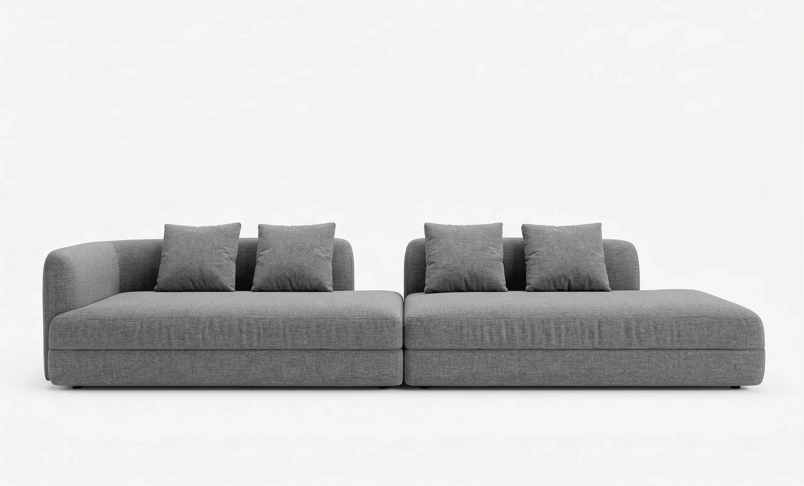 De Kobe Monumenta is een sculptuur van rust. Haar strakke, kubistische lijnen en lage silhouet creëren een ononderbroken ‘flow’ in de ruimte, terwijl de rijke textuur van de stof uitnodigt tot urenlange ontspanning. Geen harde hoeken, alleen pure elegantie die uitnodigt om in weg te zinken. Een ontwerp dat de ruimte claimt en de perfecte balans biedt tussen architecturale kracht en uitnodigende zachtheid.