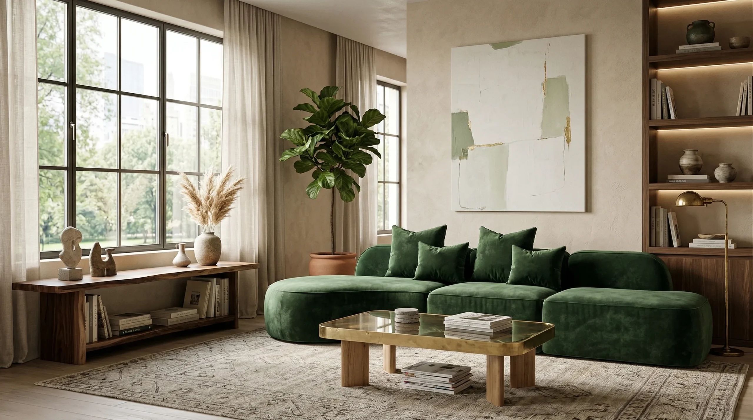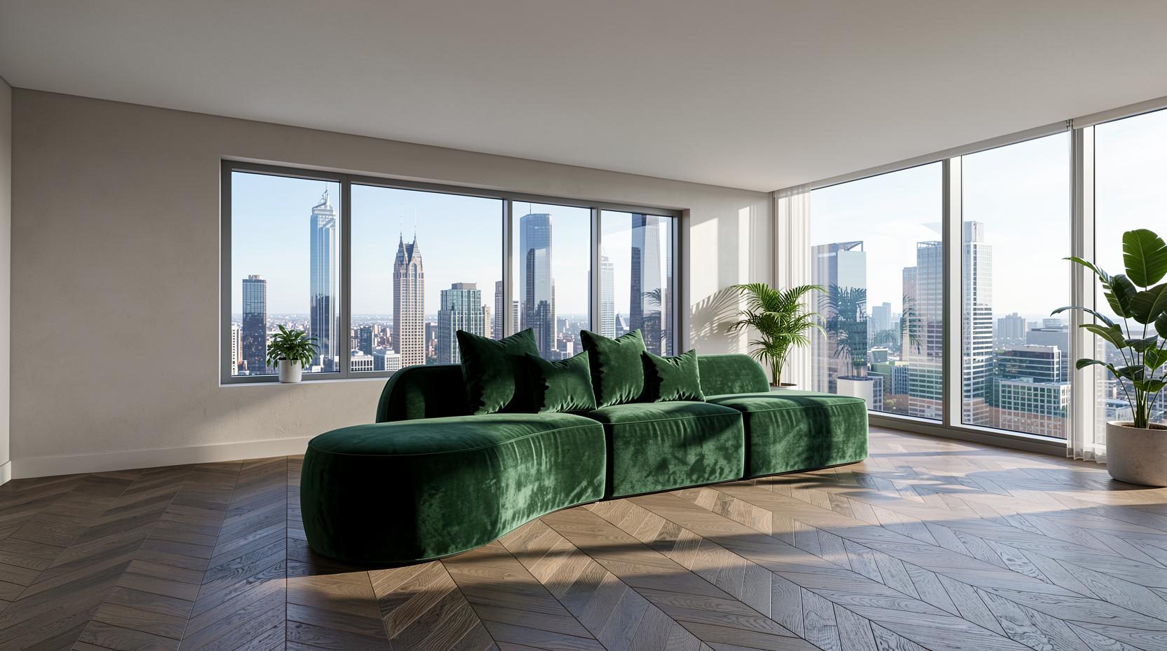 Rijke fluwelen bekleding in een diepe, koninklijke emerald-kleur